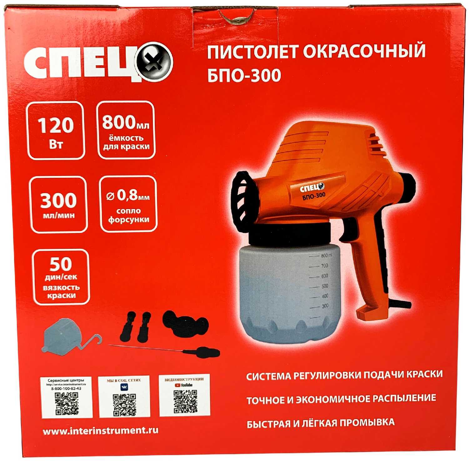 | Дополнительная информация : | Краскопульт сетевой Спец БПО-300, 120 Вт, 300 мл/мин |