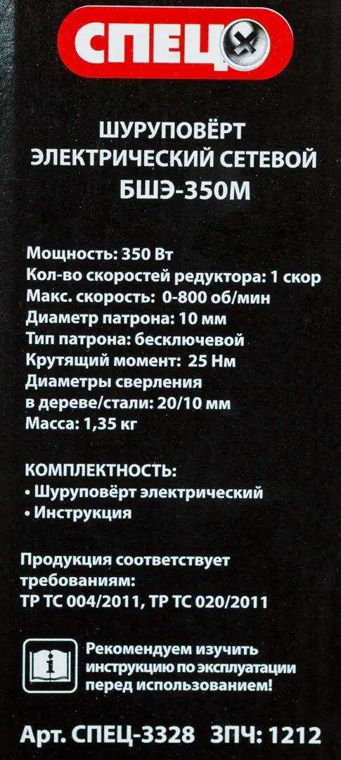 Отзывы о Дрель-шуруповерт сетевая Спец БШЭ-350М, 350 Вт