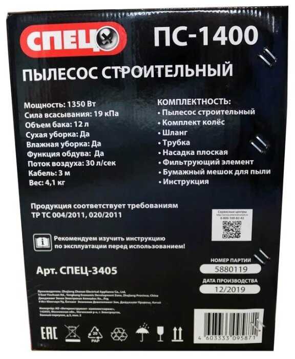 Отзывы о Профессиональный пылесос СПЕЦ ПС-1400, 1400 Вт