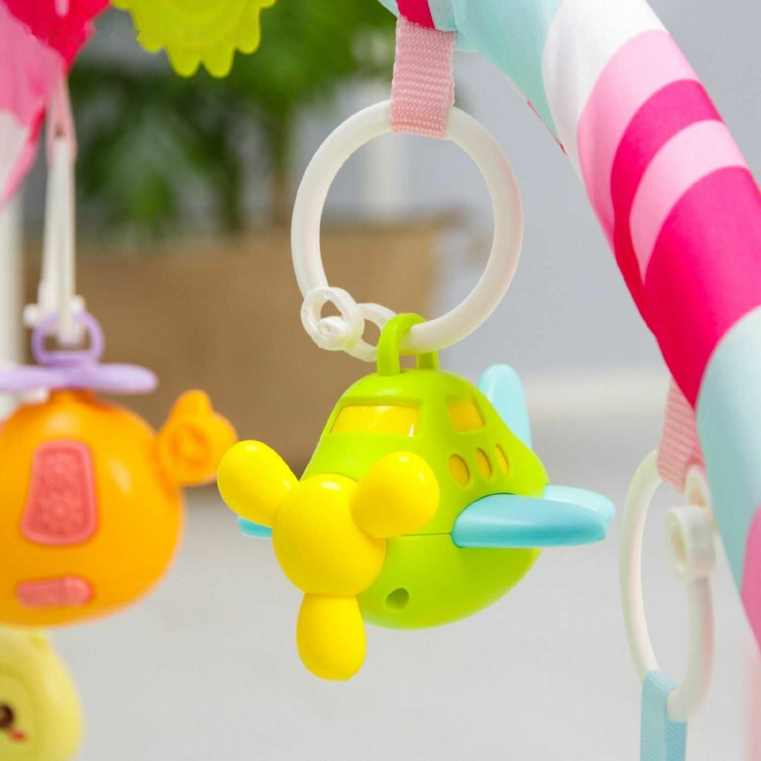 - комплектация: К дуге крепится 5 развивающих игрушек.