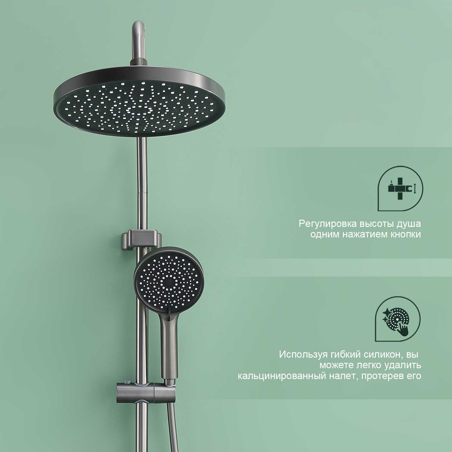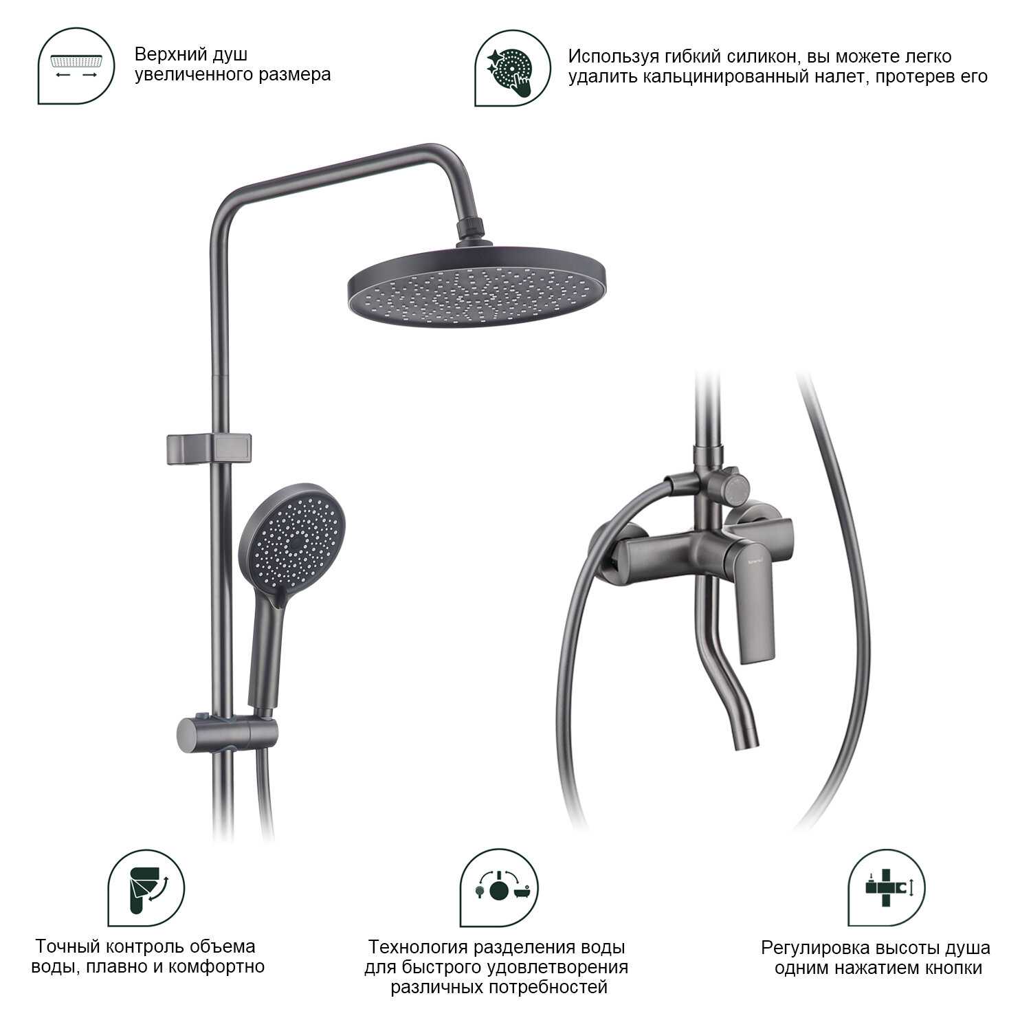 Особенности : | антиизвестковое покрытие, аэратор, регулируемый верхний душ |