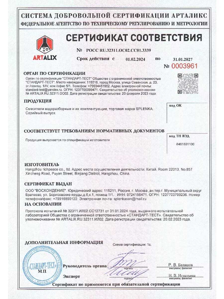3 отзывов пользователей o Splenka Смеситель S221.11.05