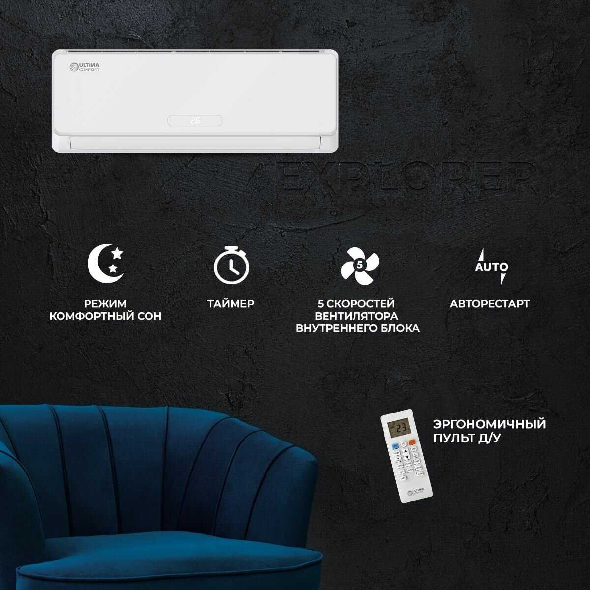 Характеристики:- обогрев и охлаждение помещений до 35м²