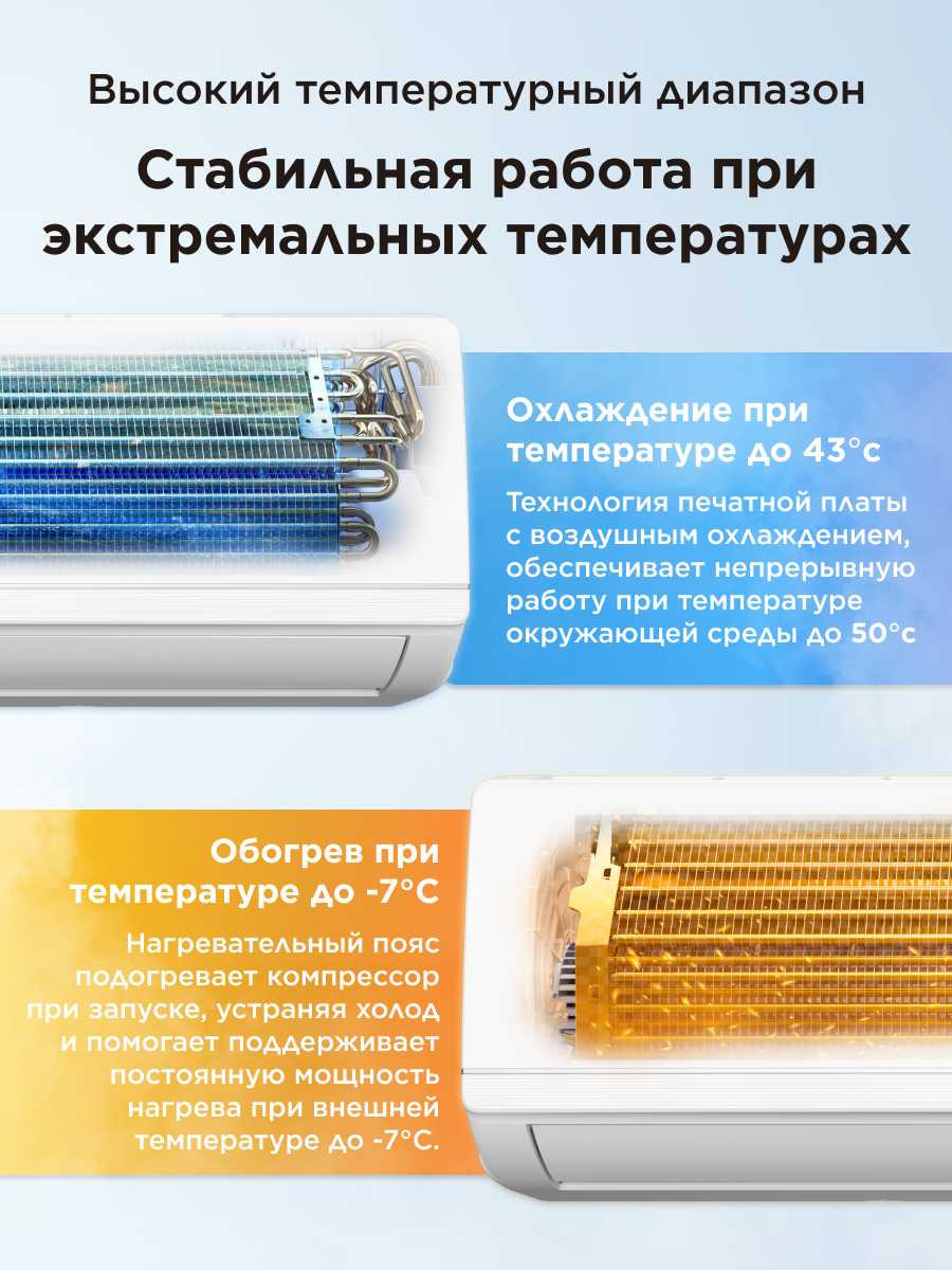 - мощность охлаждения: 2100 Вт / обогрева: 2200 Вт