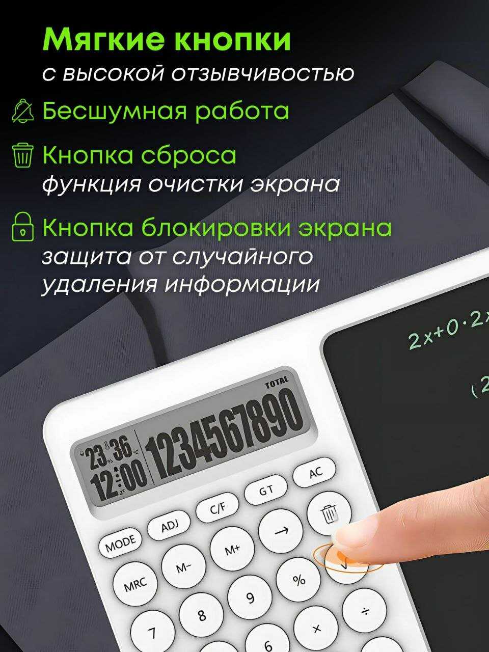 Удобный девайс для работы. Экран яркий, очищается нажатием одной кнопки. Калькулятор работает отлично, кнопки мягкие, удобные.