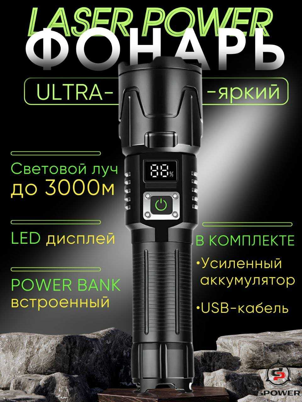 - + Мощный фонарик