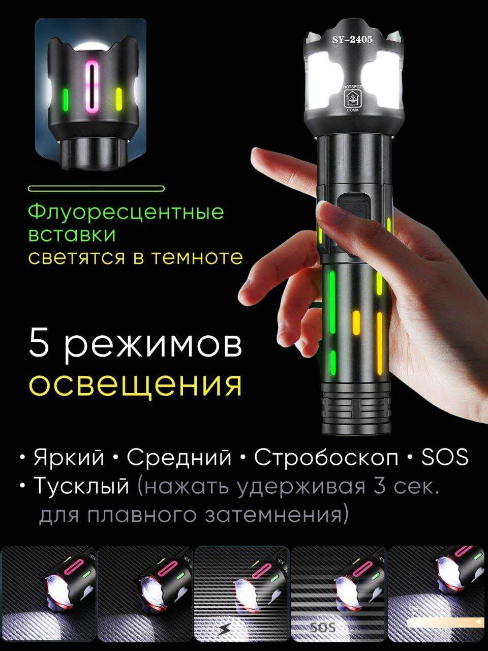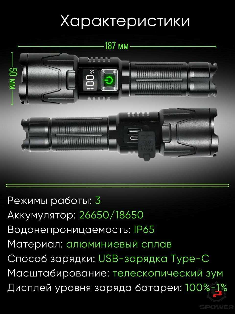 - + Фонарь - просто бомба, узким пучком на максимальной яркости бьет не меньше, чем на 1 км. Работает как павербанк. Разъем USB-C с резиновой крышечкой. Может заряжаться и светить одновременно.