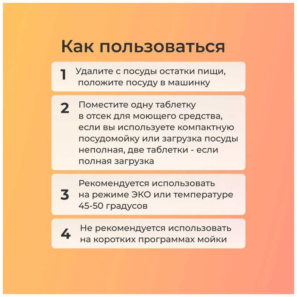 - Таблетки просто отличные. Всегда берём только их для посудомойки, посуда после них чистая, без разводов. Удобно, что не нужно ничего дополнительно засыпать, в одной таблетке ест...