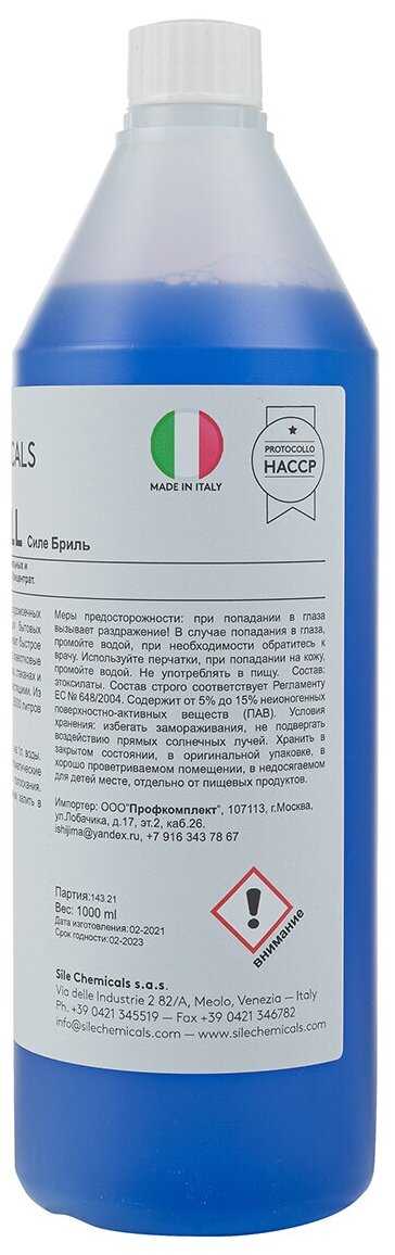 6.7/10 балловSile Chemicals SILE BRILL Ополаскиватель для профессиональных и бытовых посудомоечных машин. Концентрат. 1л, Италия