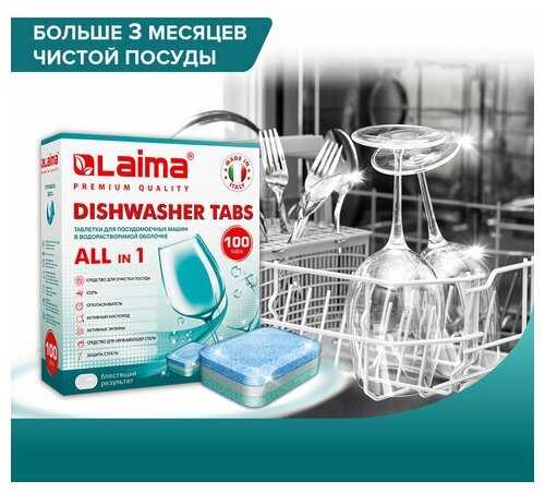 7.6/10 балловЛайма Таблетки для посудомоечной машины / посудомойки / средство для посуды 100 штук Laima Premium Quality All in 1, растворимая оболочка, Италия, 607609