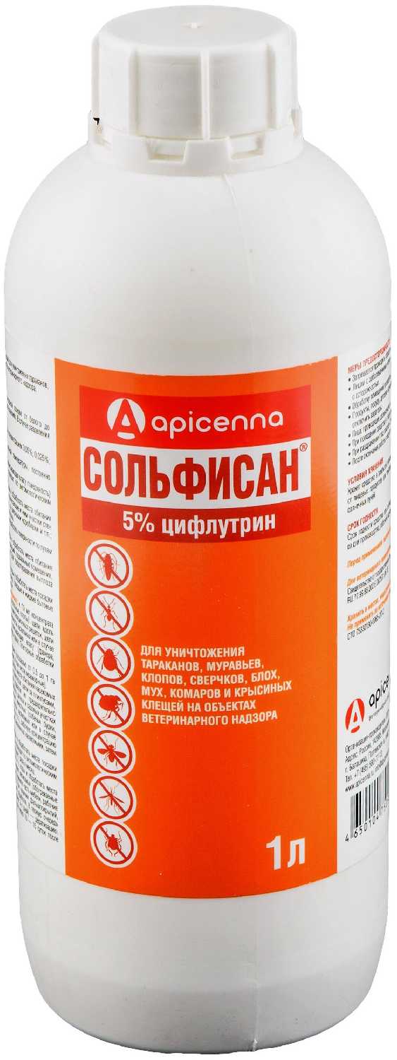 Api-San Сольфисан 1л, инсектицидное средство от клопов, тараканов, блох, муравьев, комаров, мух, сверчков, крысиных клещей.