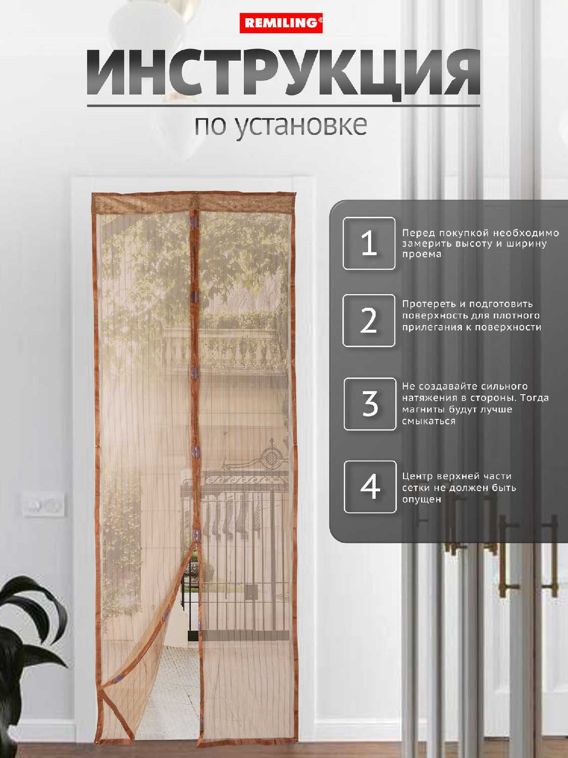 RemiLing Антимоскитная сетка надверная с магнитами (90х210см)
