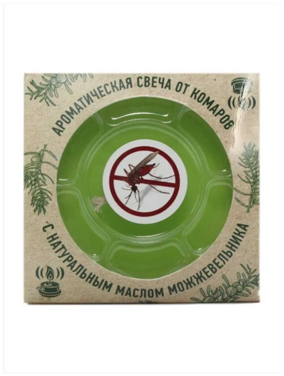 НПО Гарант Свеча от комаров, мошек, мух с натуральным эфирным маслом можжевельника в подсвечнике 60 гр