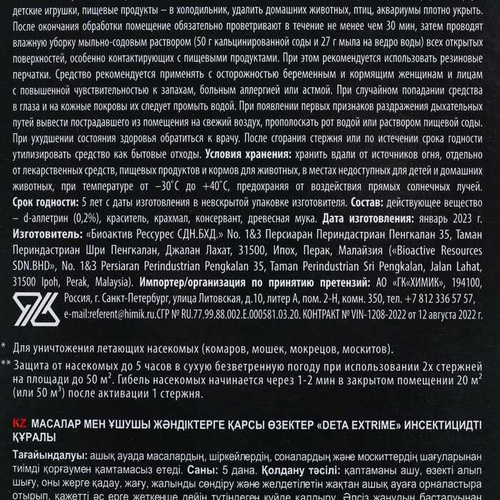 ДЭТА Комплект Стержни от комаров и летающих насекомых Insecto Дэта 4 штуки/уп. х 2 уп.