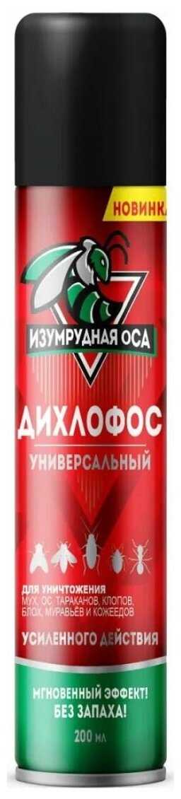 Дихлофос Изумрудная Оса, от Тараканов, Муравьев, Клопов, Блох, Мух, Бабочек, Москитов, Кожееда, 200 мл