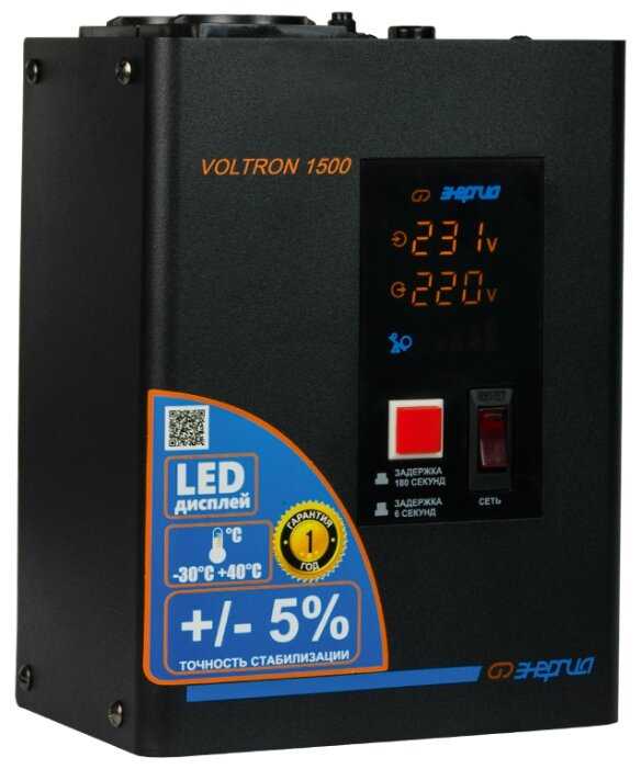 6.5/10 баллов 6.5/10 балловЭнергия Voltron 1500 (5%) (1.05 кВт)295 место из 1828 Характеристики:- релейный стабилизатор напряжения