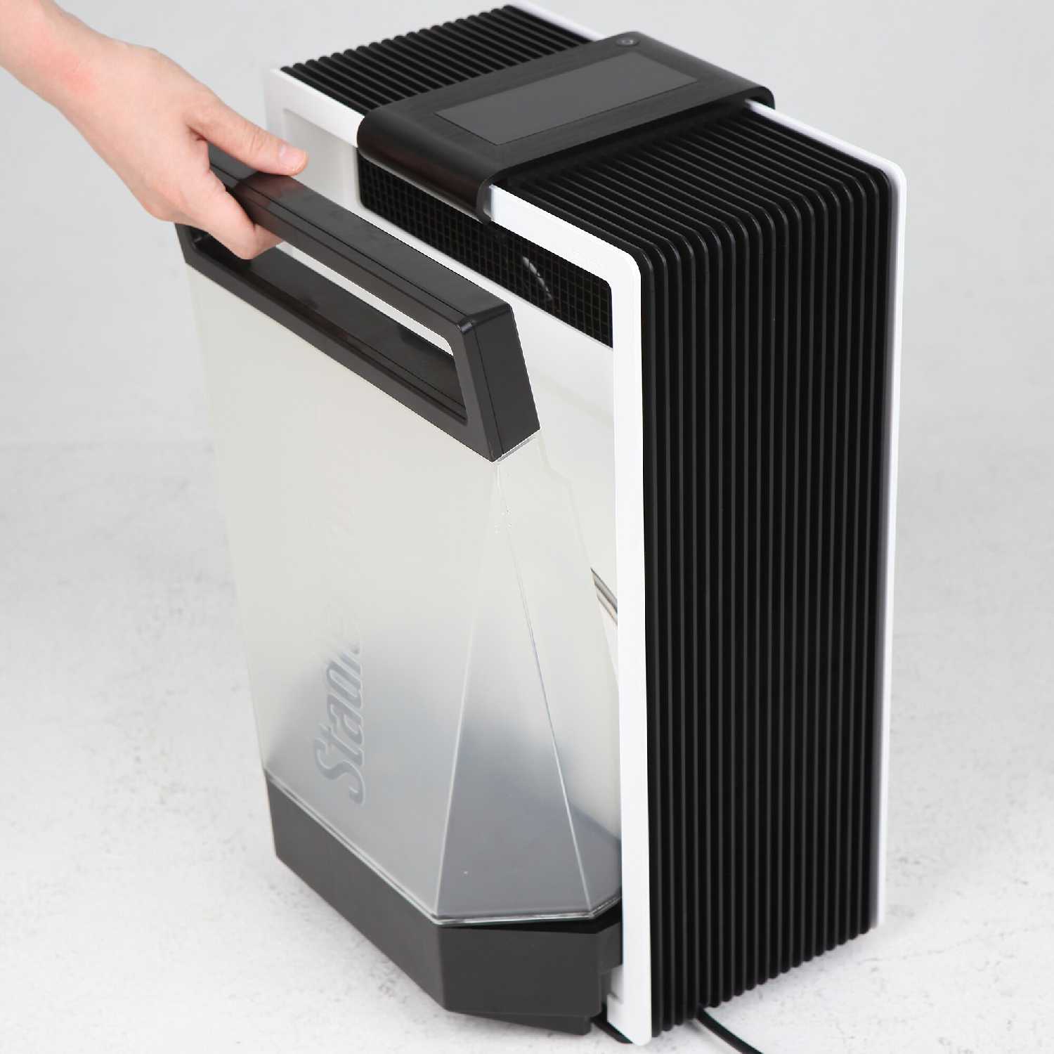 - + Этот увлажнитель выделяется среди других моделей благодаря своим возможностям и надежности. Сборка на высоте, а дизайн такой, что легко впишется в любой современный интерьер, независимо от стиля. Материалы добротные: пластик прочный, не выглядит дешевым, ничего не скрипит, все детали стоят ровно, без лишних зазоров или люфтов. Особенно круто, что передняя панель сделана из цельного алюминия толщиной 4 мм. По сравнению с теми китайскими или корейскими моделями, которые гремят и трясутся, этот выглядит как что-то из будущего. Работает почти бесшумно: на первой и второй скорости слышен только легкий шелест, а через десять минут уже и не обращаешь внимания. Заливать воду в резервуар удобно, без лишних усилий. Многие жаловались, что он не помещается в нишу, но у меня встал идеально, даже если пространство немного изогнутое. Думаю, скоро возьму второй такой же для спальни, чтобы воздух в квартире увлажнялся равномерно с двух концов.