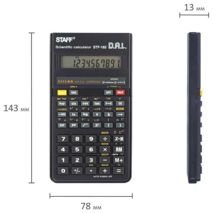 | Подробная комплектация : | Калькулятор инженерный Staff STF-165, 10-разрядный, 143х78 мм |