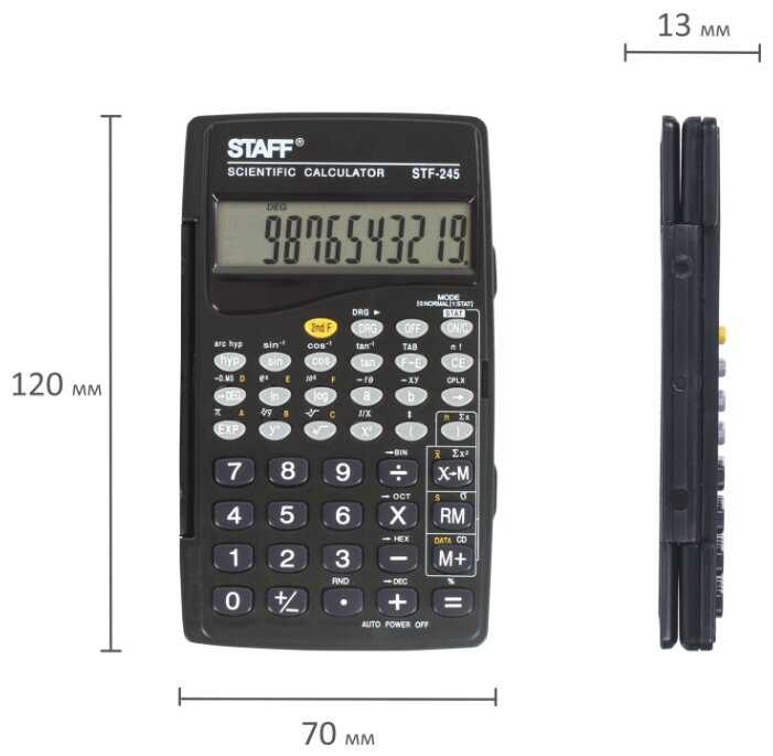 | Особенности : | квадратный корень, смена знака, автоматическое отключение питания, тригонометрические функции |