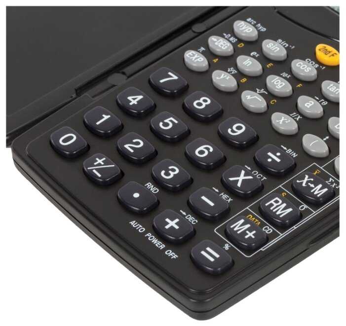 Прекрасный компактный инженерный калькулятор. Я бы сказал, что для домашнего мастера и дачного строителя-любителя. Есть жёсткая крышка на петлях, так что возможность случайных повреждений сведена до минимума.