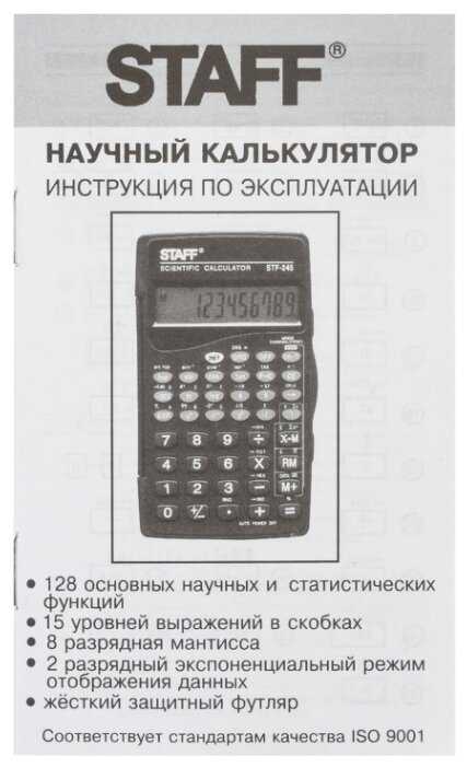 Особенности : | квадратный корень, смена знака, автоматическое отключение питания, тригонометрические функции |