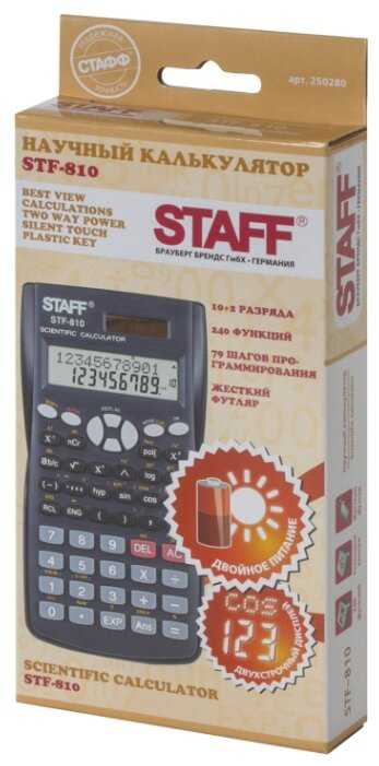 | Дополнительная информация : | дисплей - жидкокристаллический, тип калькулятора - инженерный, сдвижной пластиковый футляр, тип питания - 1 батарейка LR44 (LR1154/AG13), упаковка - картонная коробка с европодвесом |