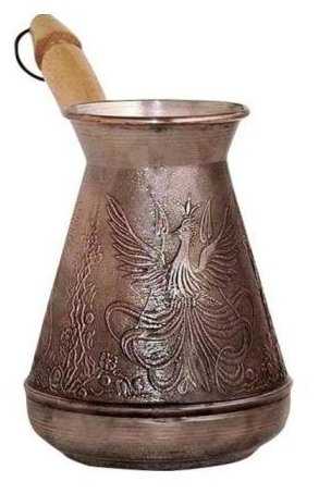 - + Прекрасная, медная турка. Удобно держать в руках. На стандартную газовую плитку встаёт хорошо. Красивая вещь. Улучшает утро. Вкус кофе в ней божественный...