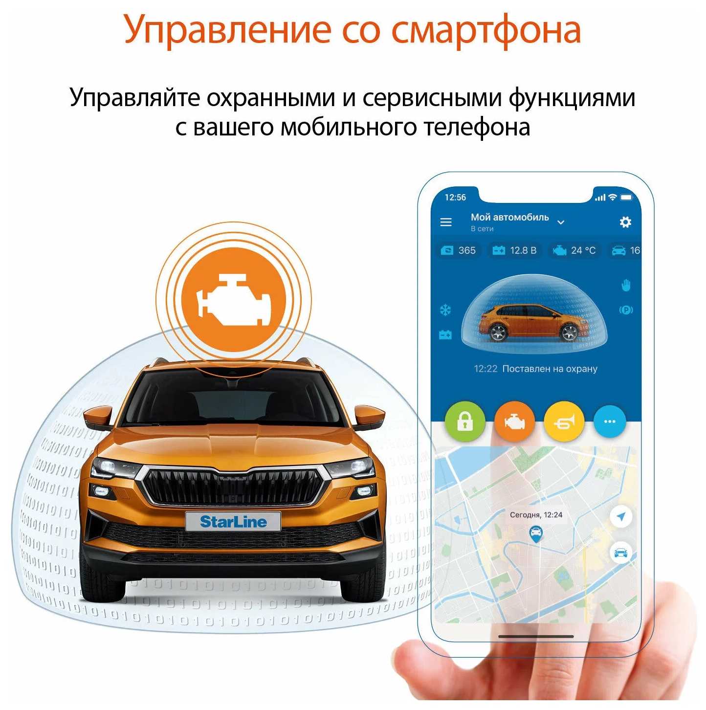 - Приложение позволяет удалённо заводить двигатель, контролировать температуру салона, уровень топлива и заряд АКБ.
