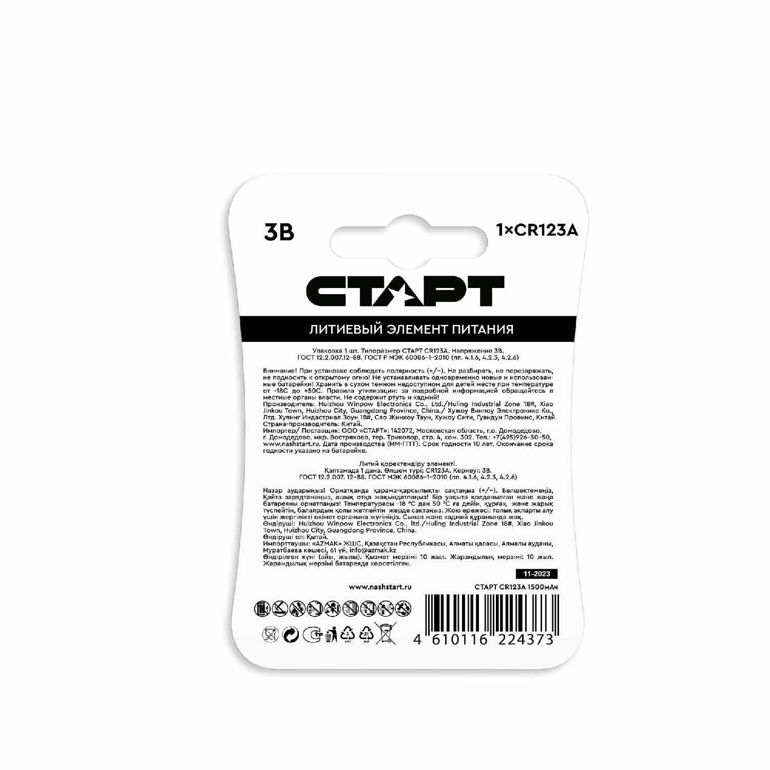 26 отзывов пользователей o СТАРТ Батарейка CR123A (3V)