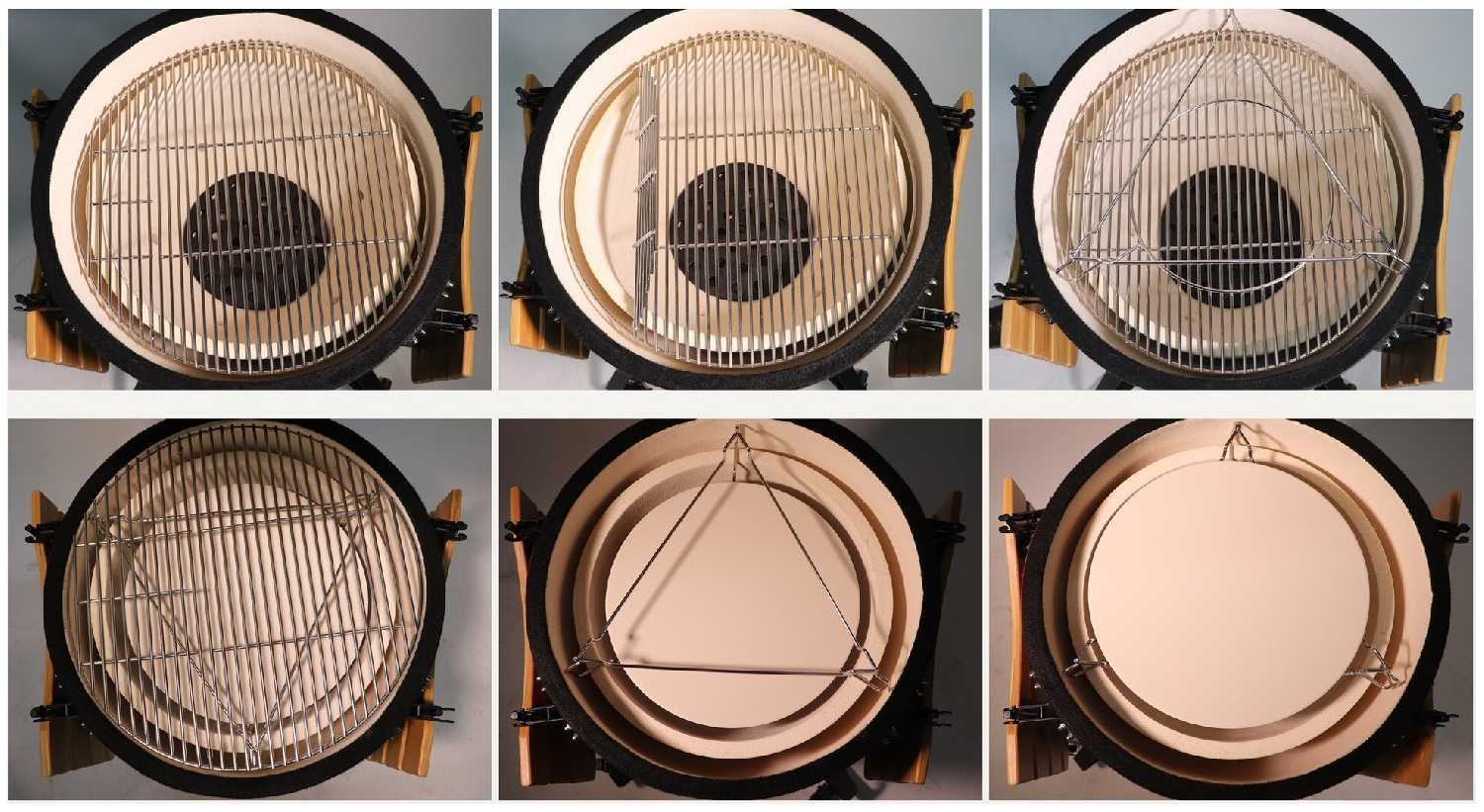 - + Отличная комплектация и качество изготовления ничуть не хуже оригинального БГЕ, керамика толстая, глазурь крепкая, метал толстый. Хороший гриль. Да и глупо делать плохой, если скопировать вообще нет проблем.