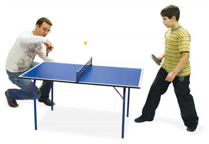 - + Отличный стол. Удобно складывать, раскладывать, хранить. Играть на нём одно удовольствие. Можно играть в квартиры и на даче. В комплекте есть сетка, не надо покупать отдельно. Она (сетка) крепиться к столу быстро и очень удобно. Всем советую!