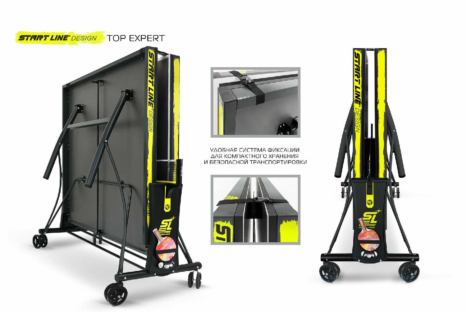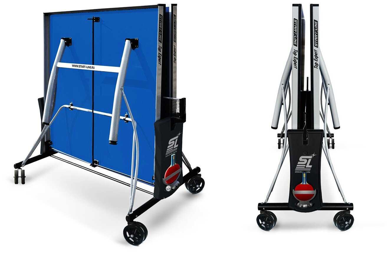Особенности : | встроенная сетка, держатель для мячей, держатель для ракеток, одностороннее складывание, полное складывание, регулировка высоты, регулировка натяжения сетки, съемная сетка, транспортировочные колесики, фиксаторы на колесиках |