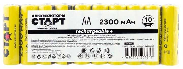 啸邪褉邪泻褌械褉懈褋褌懈 小孝袗袪孝 小褌邪褉褌 HR6 AA 2700mAh Ni-MH (BL2)