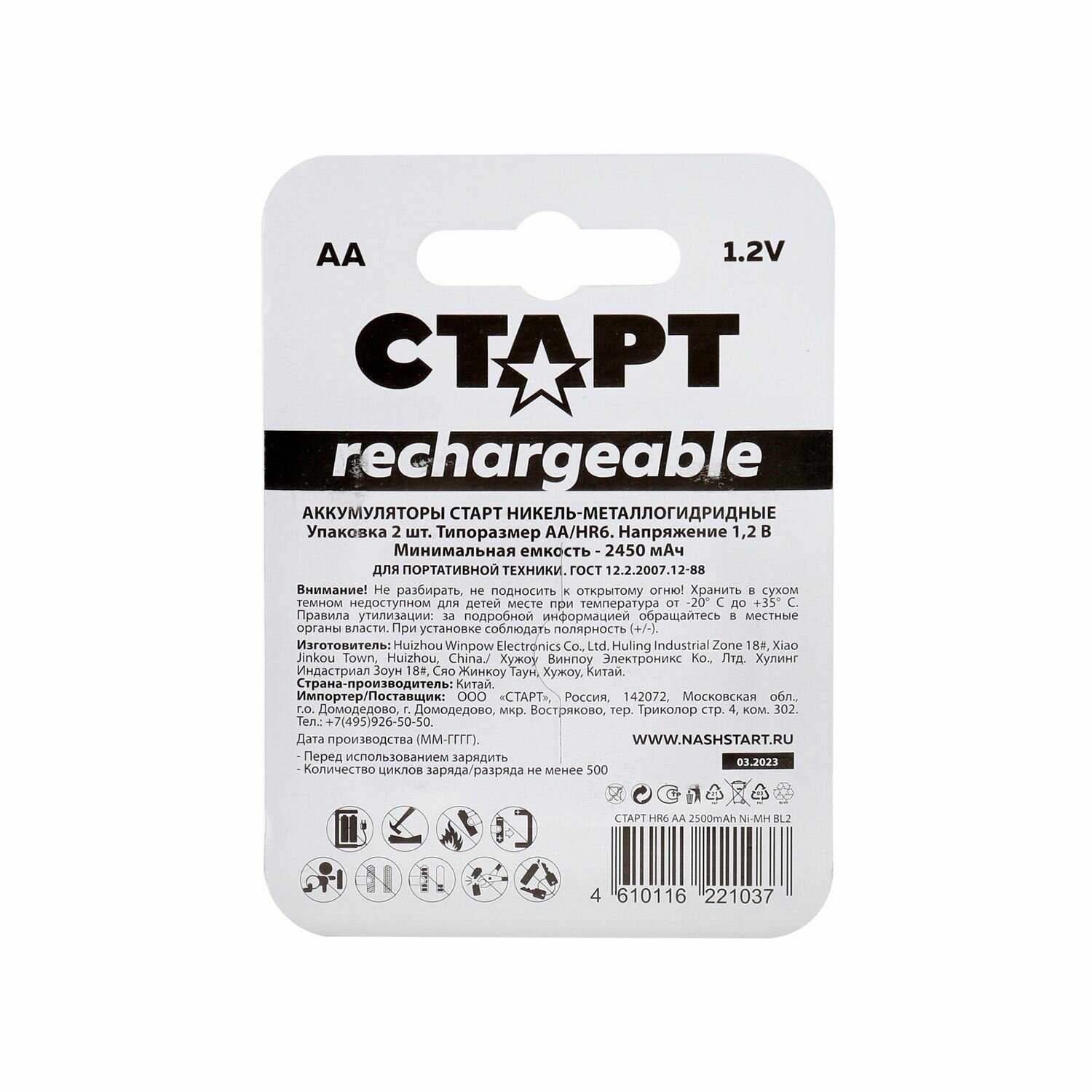 小孝袗袪孝 小褌邪褉褌 HR6 AA 2700mAh Ni-MH (BL2)?