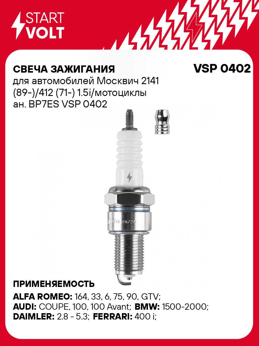 Отзывы о Свеча зажигания для автомобилей Москвич 2141 (89-)/412 (71-) 1.5i/мотоциклы ан. BP7ES VSP 0402 StartVolt
