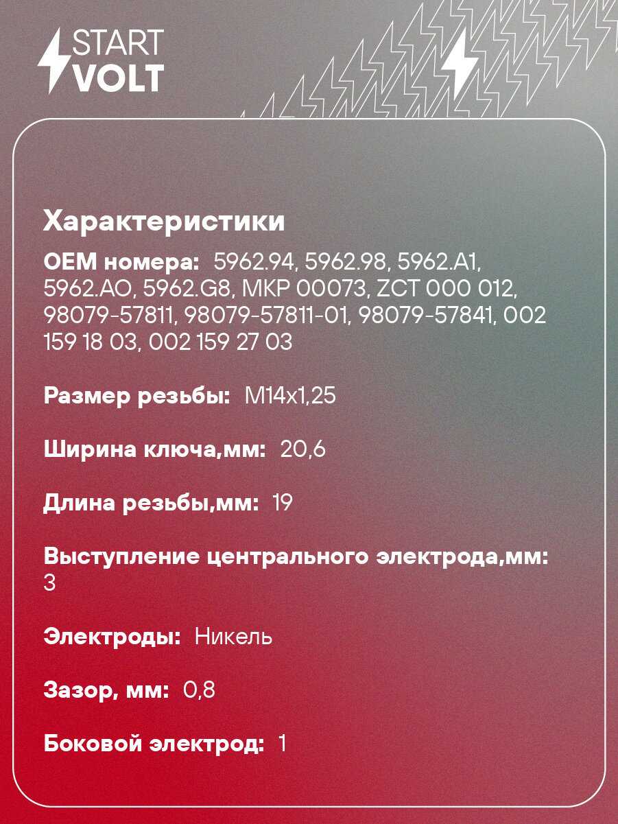 Характеристи СтартВОЛЬТ Свеча зажигания BP7ES (VSP 0402)
