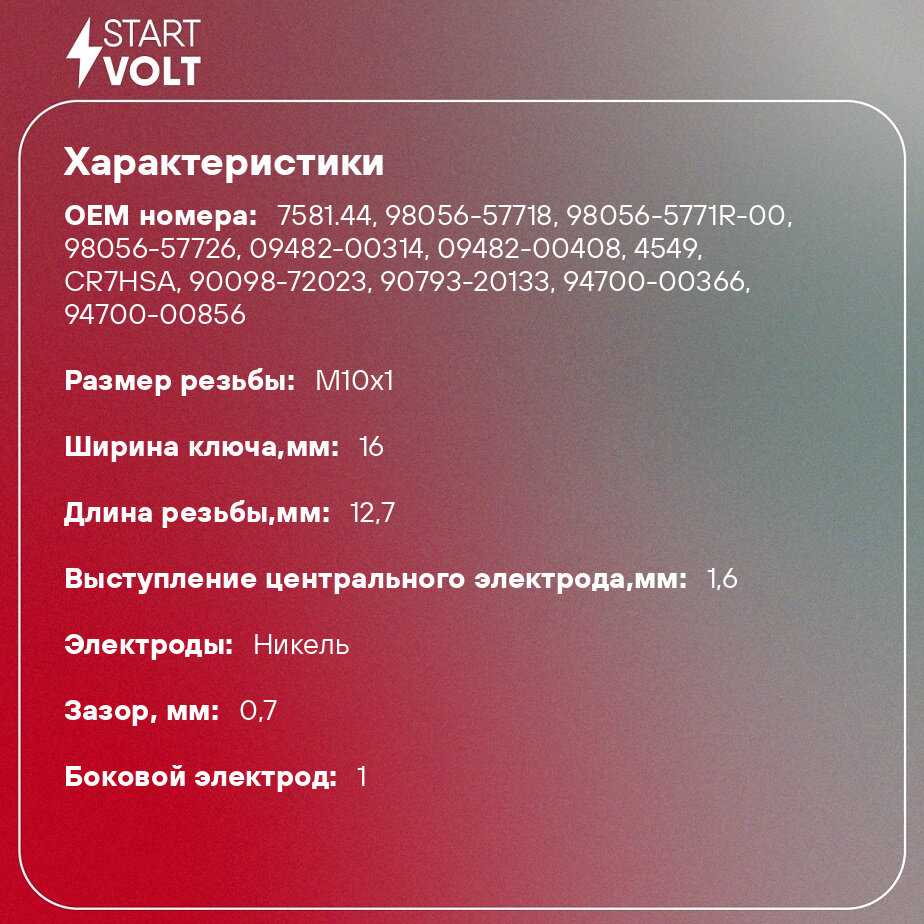 Характеристи СтартВОЛЬТ Свеча зажигания CR7HSA (VSP 3521)