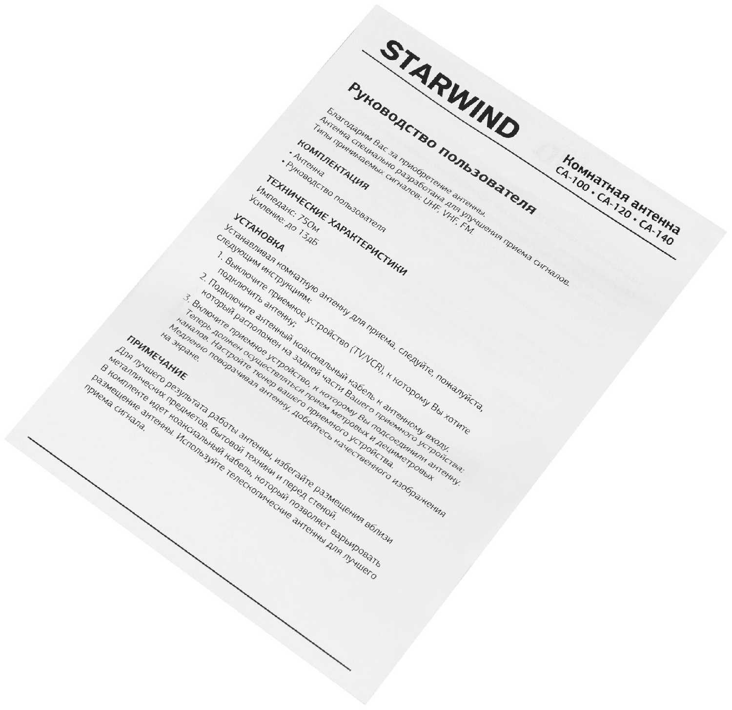 20 отзывов пользователей o STARWIND CA-120 5дБ пассивная черный