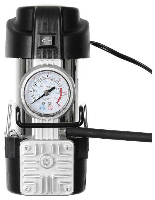 Простенький для бытового применения, ну точнее для гаража вполне себе сойдет. Ну, или можно возить его с собой. Тем более есть удобная сумочка для его хранения. Размеры довольно компактные и полезного пространства много не займет уж точно. Брал полгода назад, до сих пор живой. Со своими задачами справляется нормально. Понравилось, что шнур длинный, благодаря чему можно спокойно подключиться через прикуриватель и качать колеса.