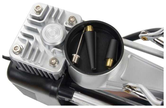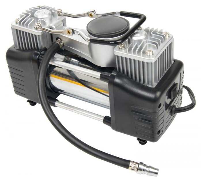 Хороший компрессор,быстро накачивает колеса,в комплекте есть дистанционный шланг с монометром, разные переходники длянакачивания матрасов,мячей,велосипедных камер и т.д.