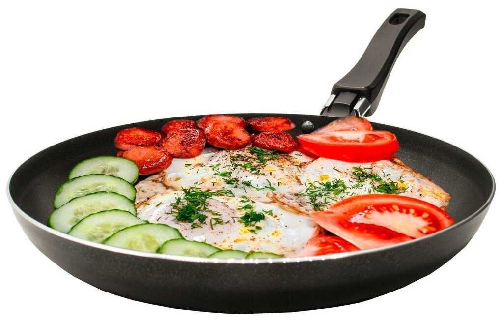 - Подходит для блинов, яичницы, мяса, овощей на газу, электрике, стеклокерамике.