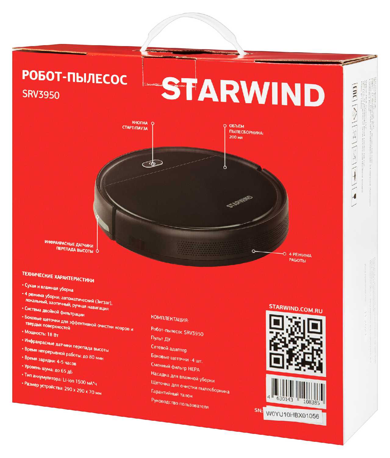 Обзор STARWIND Робот-пылесос (SRV3950)*: