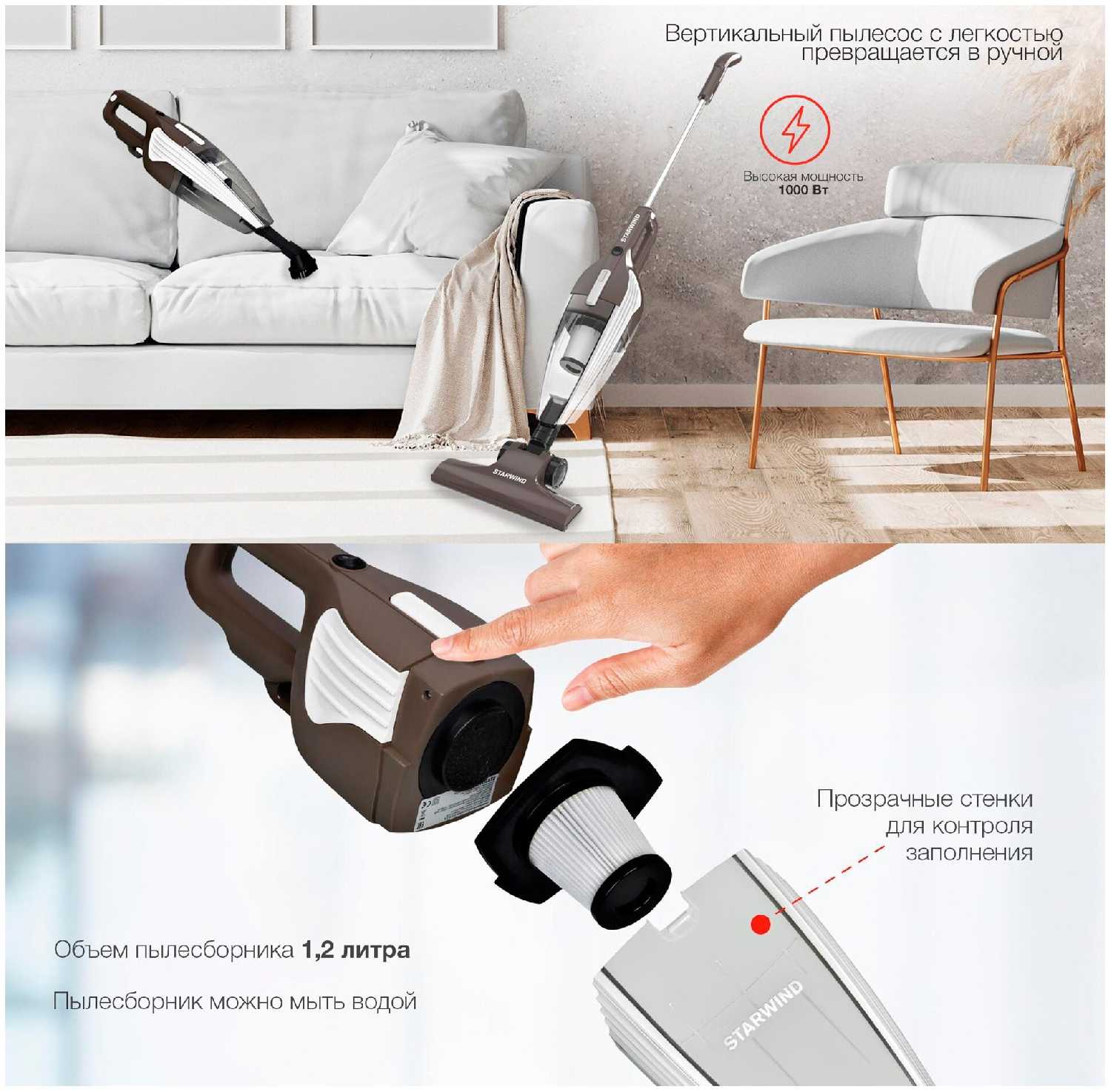 Благодаря компактности (высота около 1 м в собранном виде) и малому весу (1.5–2 кг) устройство идеально подходит для регулярного использования. Пользователи ценят возможность хранить его в углу или узкой нише, быстро включать без сборки и оперативно убирать локальные загрязнения. Шнур длиной 5 метров позволяет обработать комнату среднего размера без переключения розетки. -