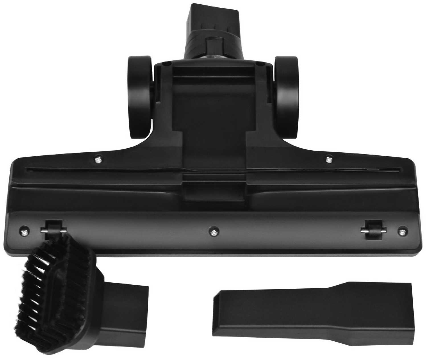 - Щетка 2в1 (щелевая/ковровая) хорошо плотно держится, в отличии от напольной лысой щетки, которая идет в комплекте.