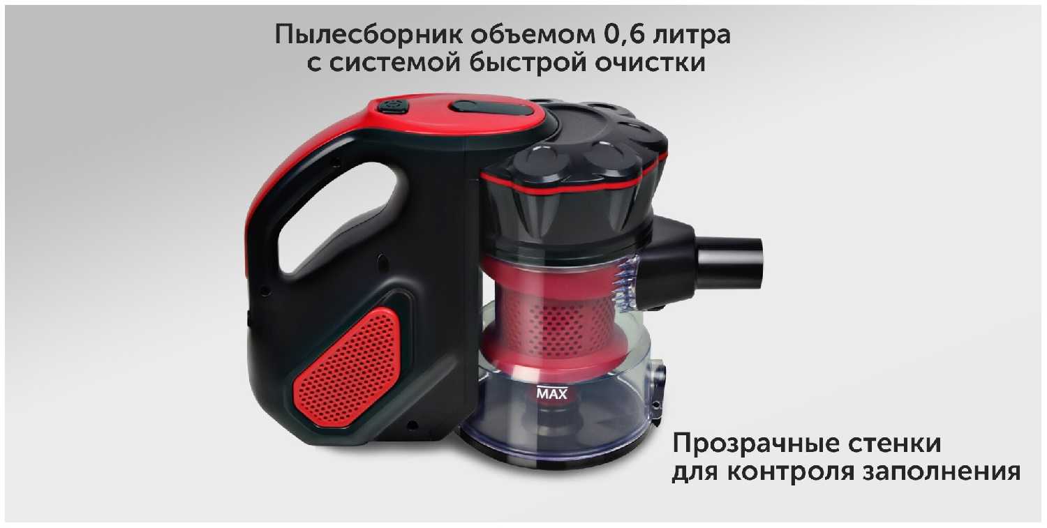 В отличии от других ручных пылесосов, при необходимости легко может залезть под шкаф и кровать. - - Нет регулятора мощности. Нет самостоятельной вертикальной стойки