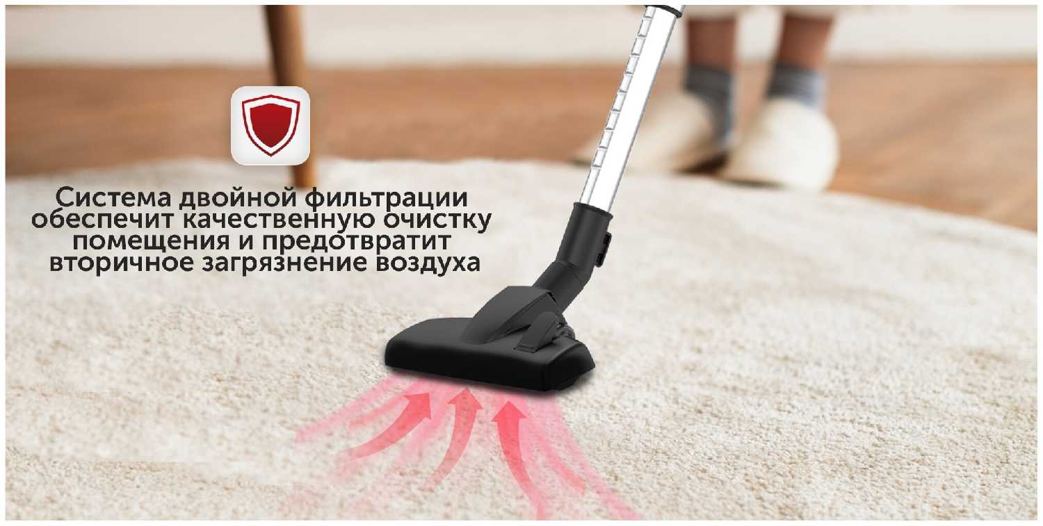 - + Удобный, не тяжелый для руки. Справляется с грязью на ламинате и на ковре с небольшим ворсом.