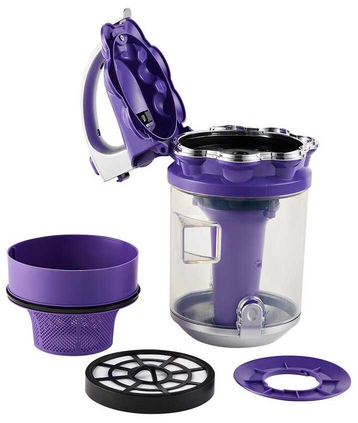 - Все элементы легко моются, включая фильтры, что делает уход простым после каждой уборки без специальных средств.
