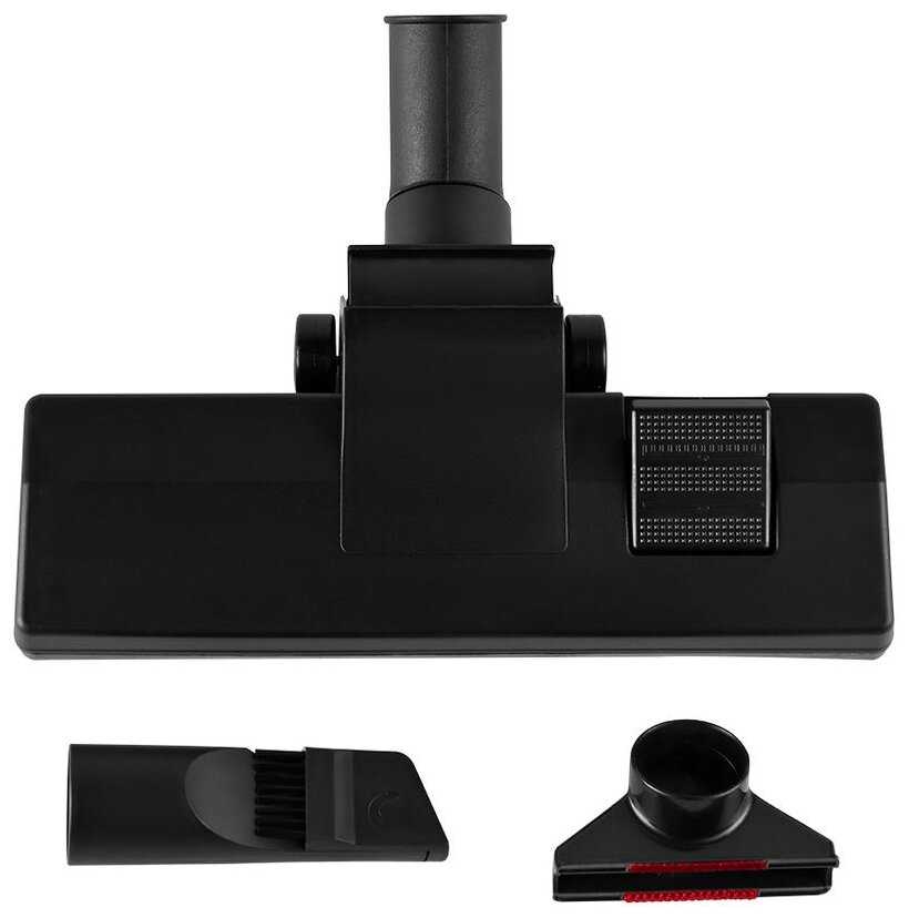 - + Есть несколько насадок— щелевая, для мебели, пола и ковров. Удобная телескопическая труба для всасывания, мощность всасывания составляет 400Вт, что немало, общая мощность пылесоса —2500Вт.