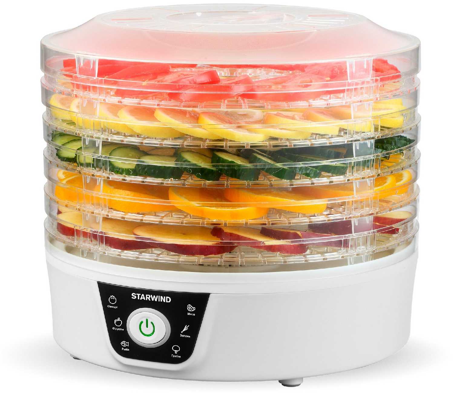 - + Высота между поддонами регулируется. Понятное управление режимами сушки одной кнопкой. Поддоны глубиной 29.5см