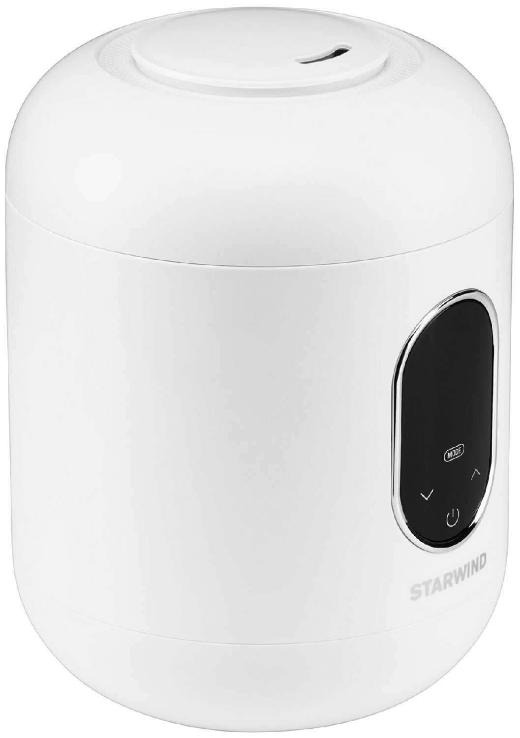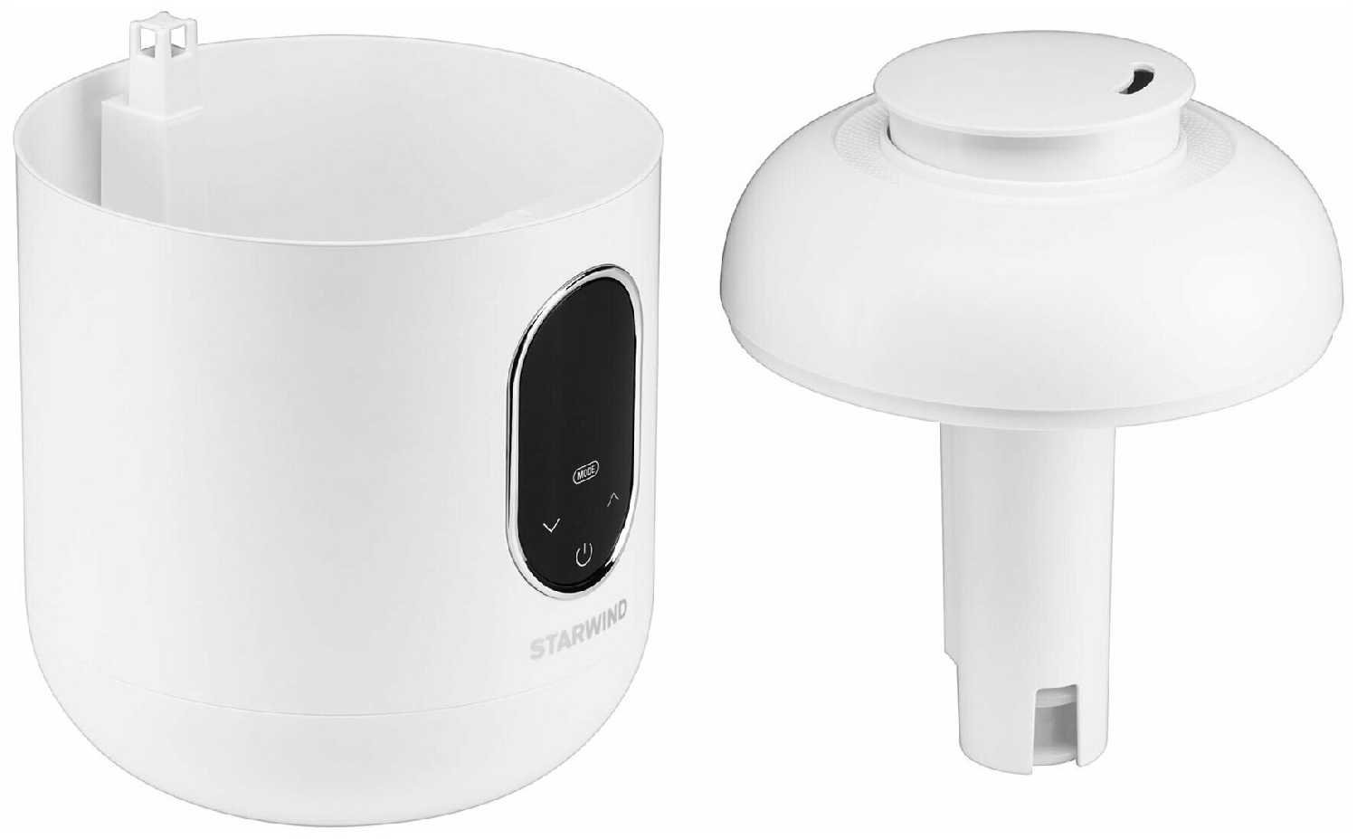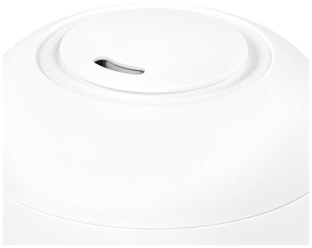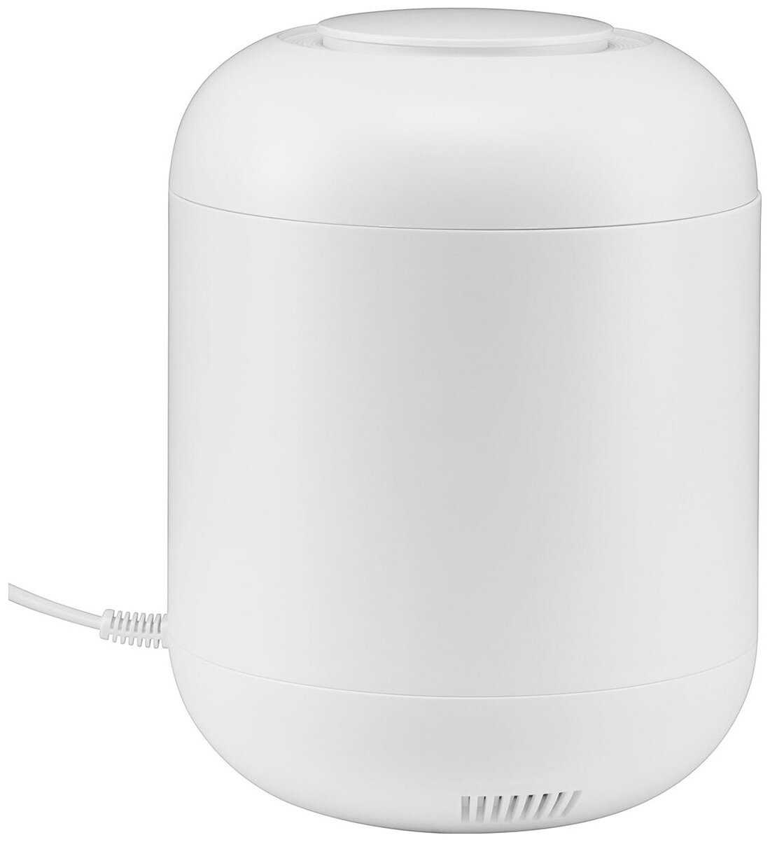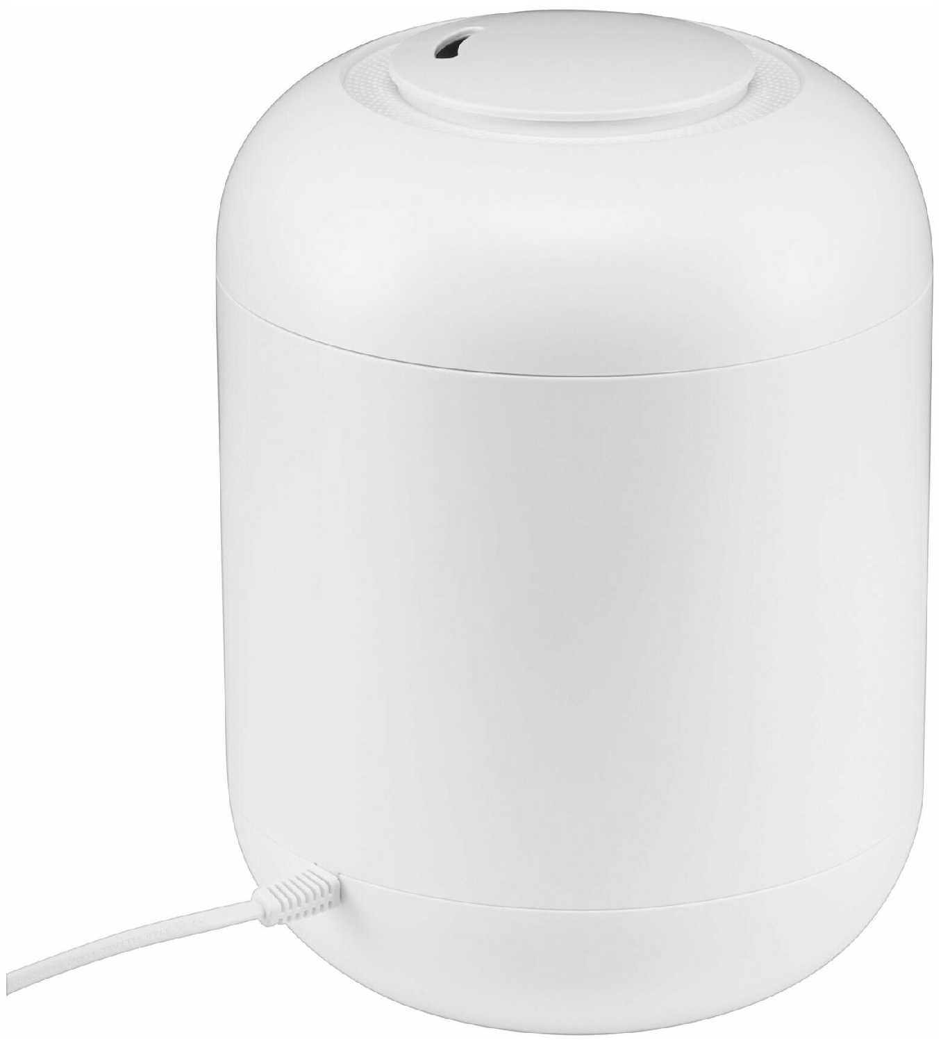 - Обтекаемая форма и белый матовый корпус делают устройство незаметным на тумбочке или столе.